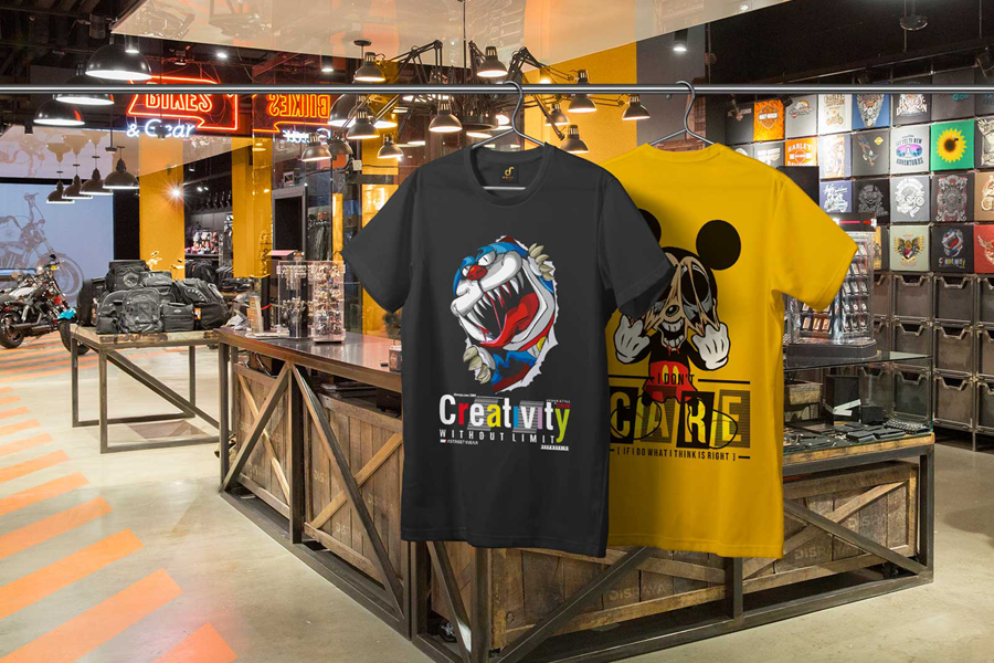 Kaos, Polo, Hoodie, Jaket, dll.. bisa menjadi medium untuk menyampakian pesan dalam bentuk iklan seperti yang terjadi pertama kali di tahun 1959 ketika Jean Seberg dalam sebuah film berjudul Breathless mengenakan kaos bertuliskan Herald Tribune yakni nama sebuah Koran berbahasa Inggris yang terbit dan populer dibeberapa Negara. Hal tersebut kemudian menjadi inspirasi beberapa event organizer yang kemudian dalam setiap event acara baik yang diadakan pihak pemerintah ataupun pihak-pihak yang lain baik yang sifatnya formal maupun non formal memilih kaos sebagai media iklan ataupun sebagai penggalang wacana publik. Pemakai kaos juga baik secara sadar ataupun tidak menjadikan merek kaos yang dipakainya sebagai media iklan secara “gethuk tular” (mulut ke mulut) ataupun menjadi representasi identitas dirinya.
